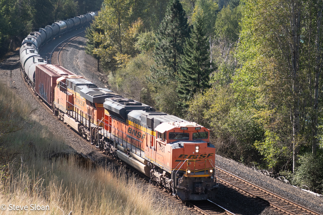 - At 11:10 a.m., on Wednesday, September 17, 2025, in The Funnel a.k.a the BNSF Spokane Subdivision, along Bottle Bay Road, North of Sagel, Idaho, an eastbound, 2+1, empty ethanol train was about to cross Lake Pend Oreille. Power on this train was 8481, 7909 + 4089.