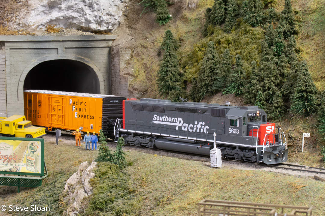 - My model of Southern Pacific (SP) 8693 led an HO westbound train out of the tunnel at "Weed" on the California Central Model Railroad Club (CCMRC) in the historic Agnew depot in Santa Clara, CA, on Saturday, January 30, 2016. This is an Athearn Genesis model.