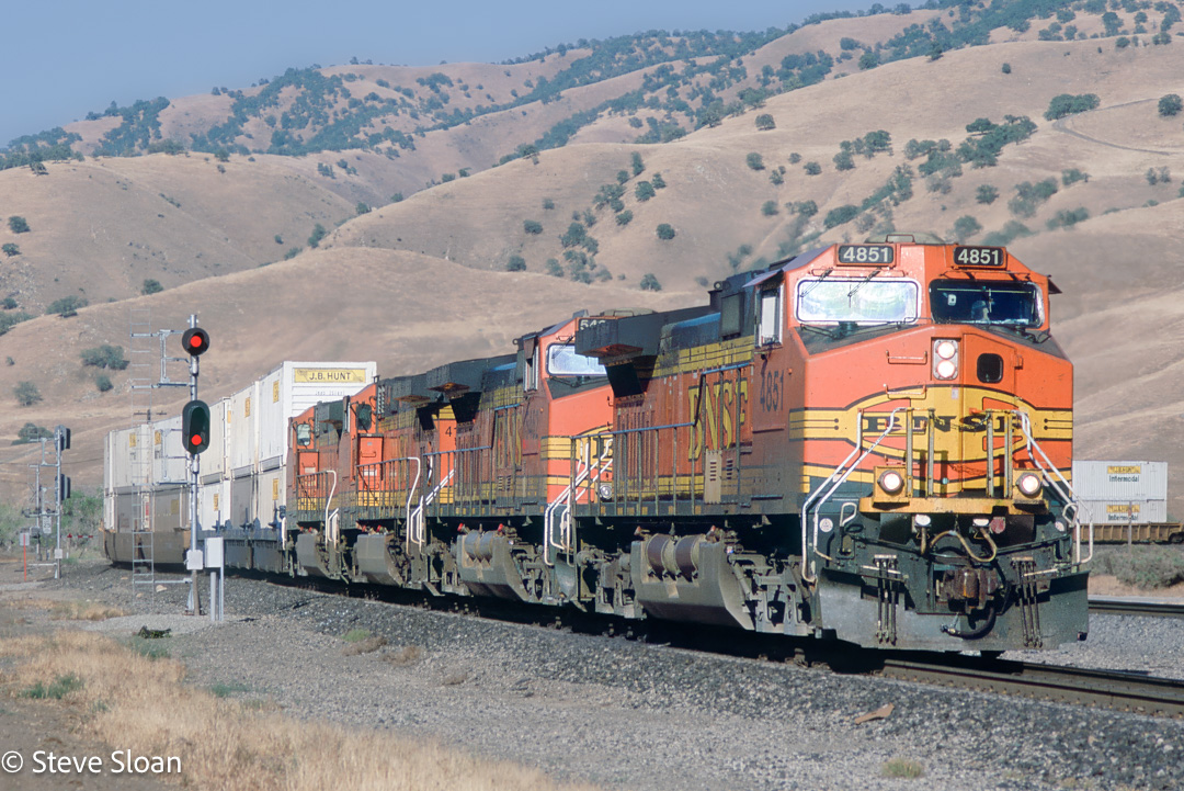 - On Wednesday, May 15, 2013, BNSF Railway (BNSF) 4851 was leading a northbound intermodal train at around the horseshoe at Caliente, CA.