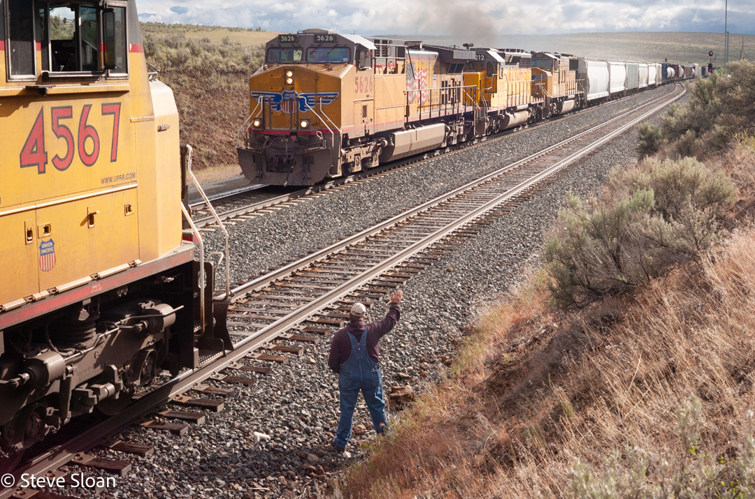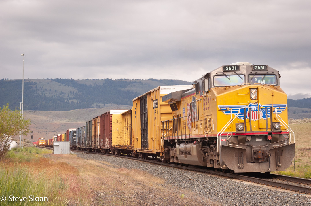 - Union Pacific 4567 leads an eastbound stack train meeting a westbound manifest led by 5626, 3212 and 4213 at Sago, Oregon on June 10, 2007. Union Pacific 5631 shoves hard on the back.