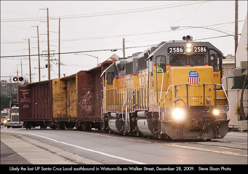 - Finally back in Watsonville. The local does its last street running on Walker Street at 3:05 p.m. The journey for UP's last Santa Cruz Local and the story of big time railroads running to Santa Cruz is likely drawing to a close.