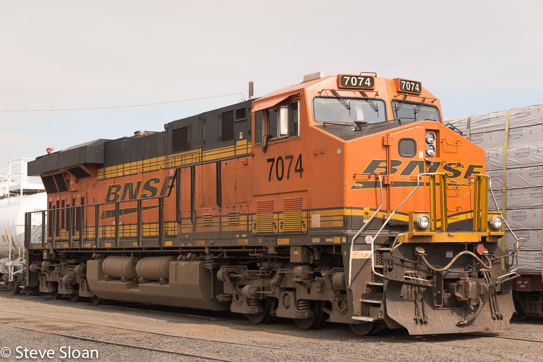 - On Friday, August 18, 2017, at 10:25 a.m. in Bend, OR, BNSF Railway (BNSF) GE ES44C4 7074 is on a fire train with fire car BN 974103 and riding platform BN 12375. The smoke light is from the then out of control Sister's Fire.