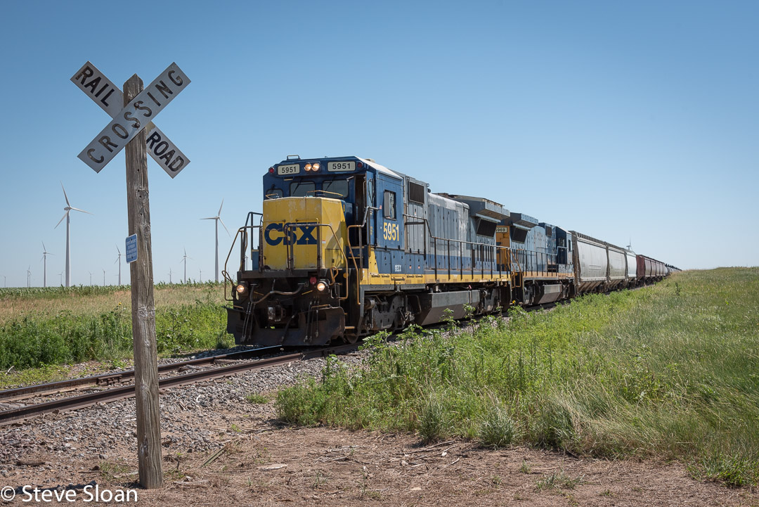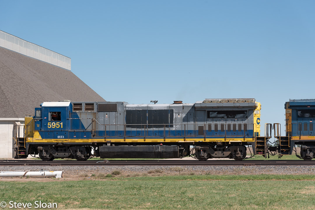 - Continuing west out of Montezuma, KS; GECX rent-a-wrecks 5951 & 5969 (former CSX GE B40-8s) are in charge of the Cimarron Valley Railroad's (CVR)'s westbound Dodge City Turn. The train is poking along the old ATSF track at 10 mph on Friday, June 28, 2019.