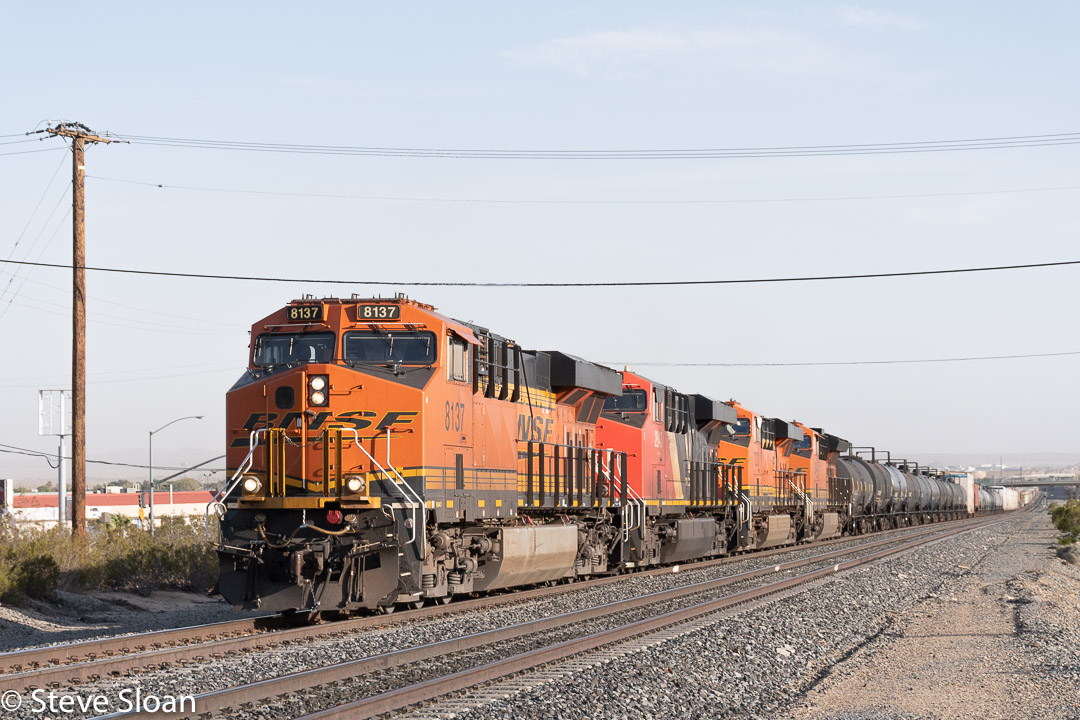 - 6:02 p.m., Northbound (Westbound) BNSF Manifest, 4+2, Arroyo Ave., MP 379.43, BNSF 8137, CN 2843, BNSF 7233, 3944 + 3278, 6655
