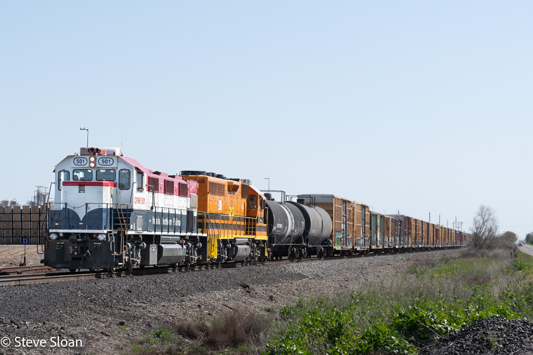 - California Northern (CFNR) 501 and 2269 are working at the Morning Star Packing Company in Williams, CA at 2:00p.m. on Thursday, March 16, 2023.