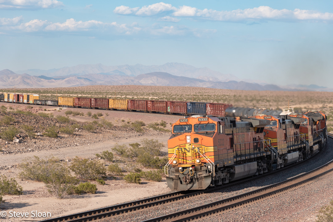 - On Wednesday, June 14, 2023, 6:16 p.m., at Lavic, CA, on BNSF Railway's Needles Subdivision, a westbound manifest has BNSF 5332, 4368, 4380, 6670, 7152 on the point.