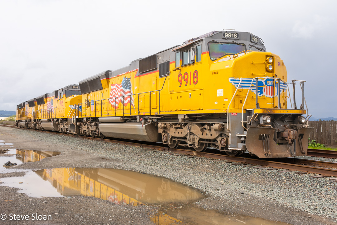 - Union Pacific (UP) 9918, 9915 and 9923 are in Suisun City, CA, near the intersection of Cordelia St. and Pennsylvania Ave. at 12:20 p.m. on Saturday, March 2, 2024. According to Paul Jansson, "Usually power for the job LRJ90 Suisun to Roseville hauler, they stop and work Davis on the way to Roseville."