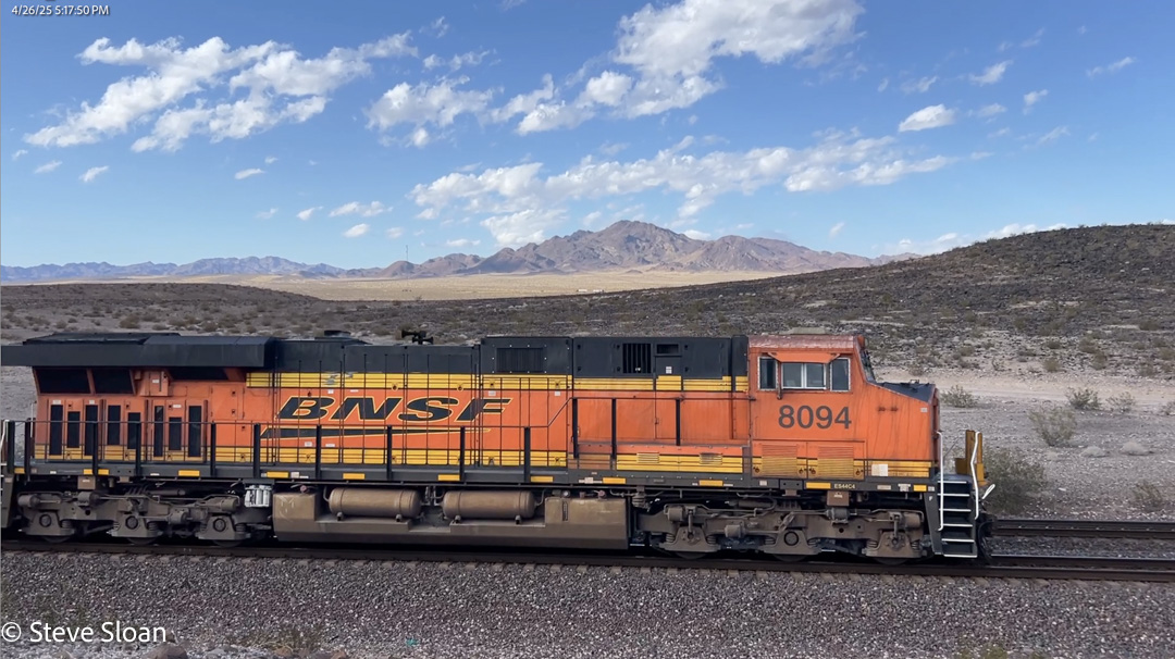 - At 5:18 p.m. on Saturday, April 26, 2025, an eastbound BNSF Railway (BNSF) stack train, led by BNSF 8094, was on the BNSF's Needles Subdivision at Lavic, CA.