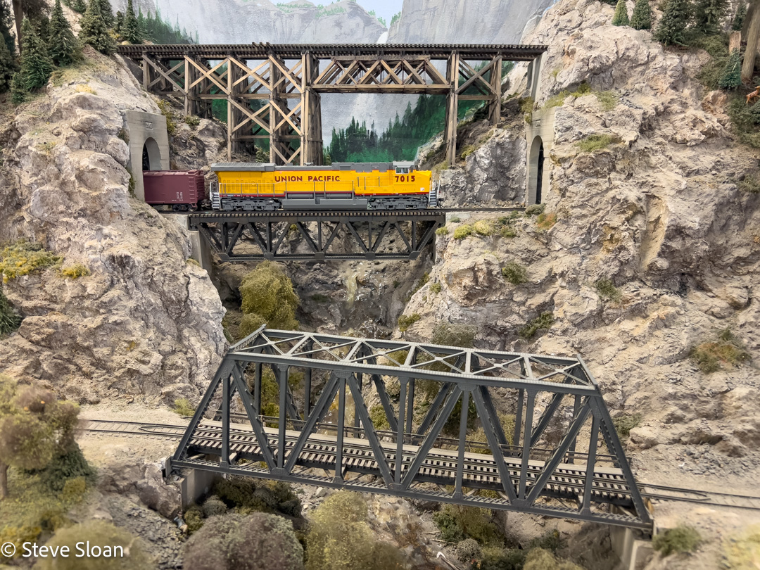 - On Saturday, February 21, 2026, at the California Central Model Railroad Club (CCMRC) in the historic Agnew depot in Santa Clara, CA, an HO model of Union Pacific (UP) 7015 crossed the middle trestle over "Mouse Creek." This is a Broadway Limited HO model.
