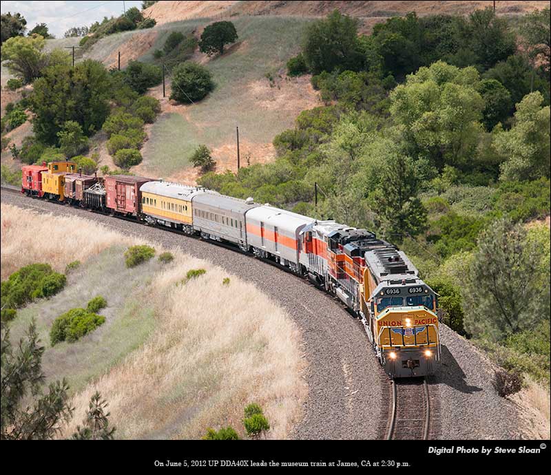 Nikon D300s Digital Image: 2012060702.60 - On June 5, 2012 UP 6936 leads the museum train into James, CA at 2:30 p.m.