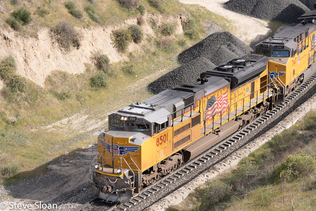 - On Tuesday, April 13, 2021, Union Pacific Railroad Company (UP) 8501, 7147, and 8703 lead a westbound intermodal towards Tunnel 3 and Bealville, CA.